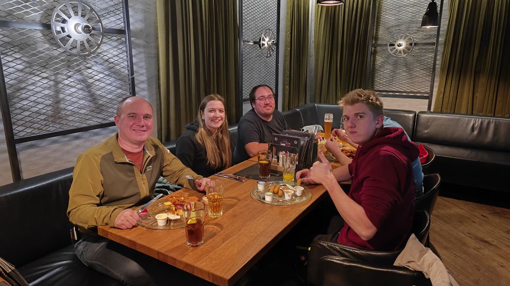 Die Werkstatt Rankweil bot schließlich genügend Platz für unsere 25 Jugendlichen und 5 Betreuer. Dort wurde ein gemütlicher Abend verbracht, bei dem ein schmackhaftes Abendessen serviert wurde. Die angenehme Atmosphäre des Restaurants sowie die gemeinsame Zeit sorgten schnell dafür, dass die spontane Planänderung in den Hintergrund rückte.