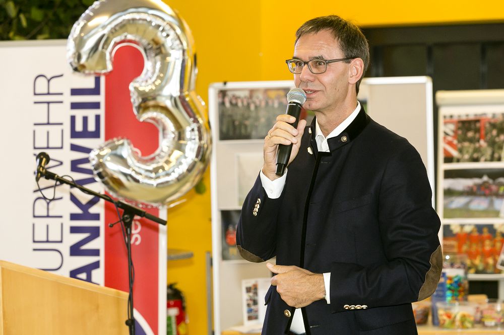 Nach der Begrüßung durch Kommandant Markus Mayr erfolgte die Segnung der neuen Fahrzeuge durch den neuen Rankweiler Diakon Roland Sommerauer. Anschließend wurde zum zweiten Programmpunkt übergeleitet – der Feier zu 30 Jahre Feuerwehrjugend Rankweil.