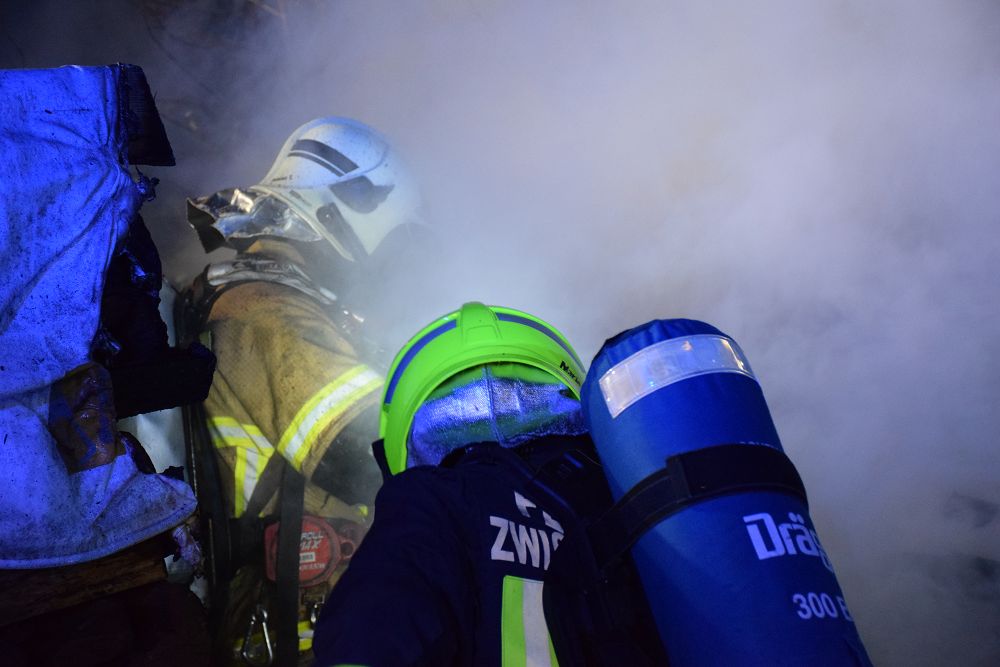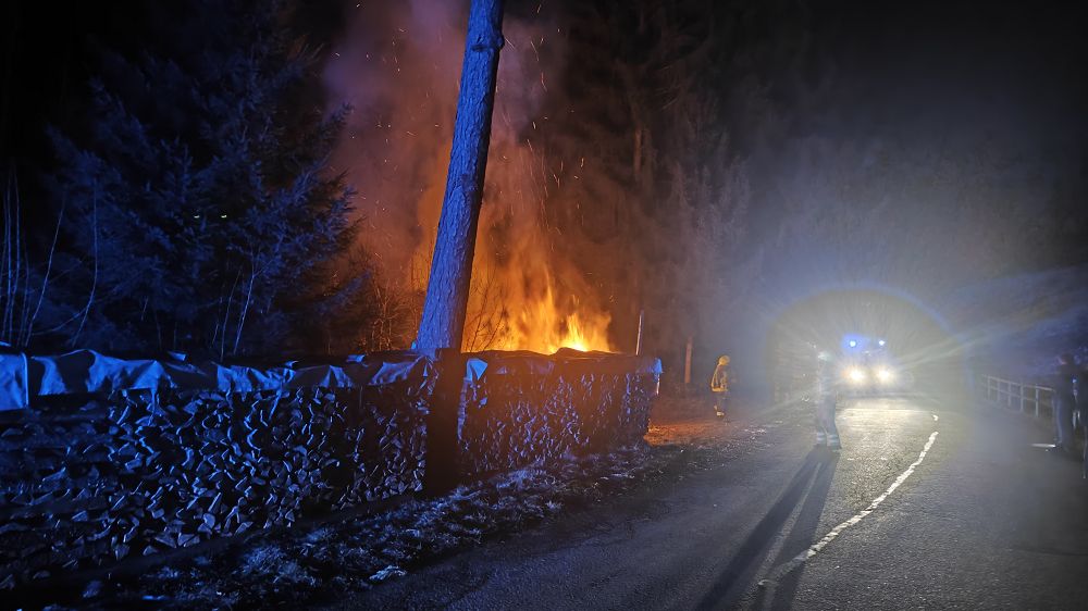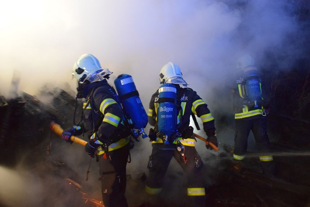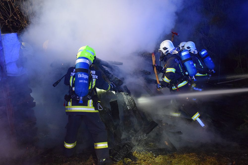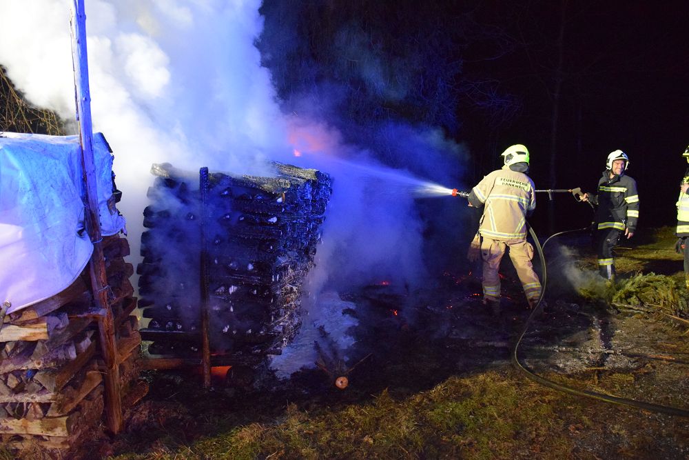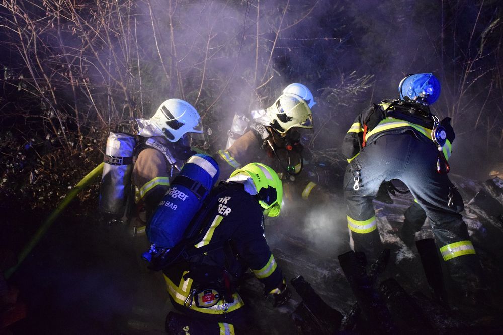 Unter Atemschutz wurde der betroffene Holzstapel auseinandergezogen, um auch tieferliegende Glutnester freizulegen und gezielt ablöschen zu können. Durch das rasche und koordinierte Vorgehen der eingesetzten Feuerwehren konnte eine weitere Brandausbreitung verhindert werden.