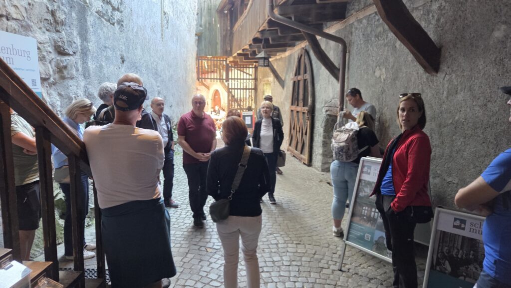 Der Tag begann um 09:30 Uhr mit dem Treffpunkt vor dem Montforthaus. Anschließend wurden die Teilnehmer in Gruppen durch die historische Innenstadt und die Schattenburg geführt, wobei die Führungen viel Wissenswertes und spannende Einblicke boten. Gegen 12:00 Uhr trafen sich alle im Restaurant des Hotel Leonhard, wo ein reichhaltiges Buffet für jeden Geschmack bereitstand. Der Ausflug endete mit einem gemütlichen Ausklang auf der Rankweiler Kilbi, wo die Teilnehmer den Tag in geselliger Runde ausklingen ließen.