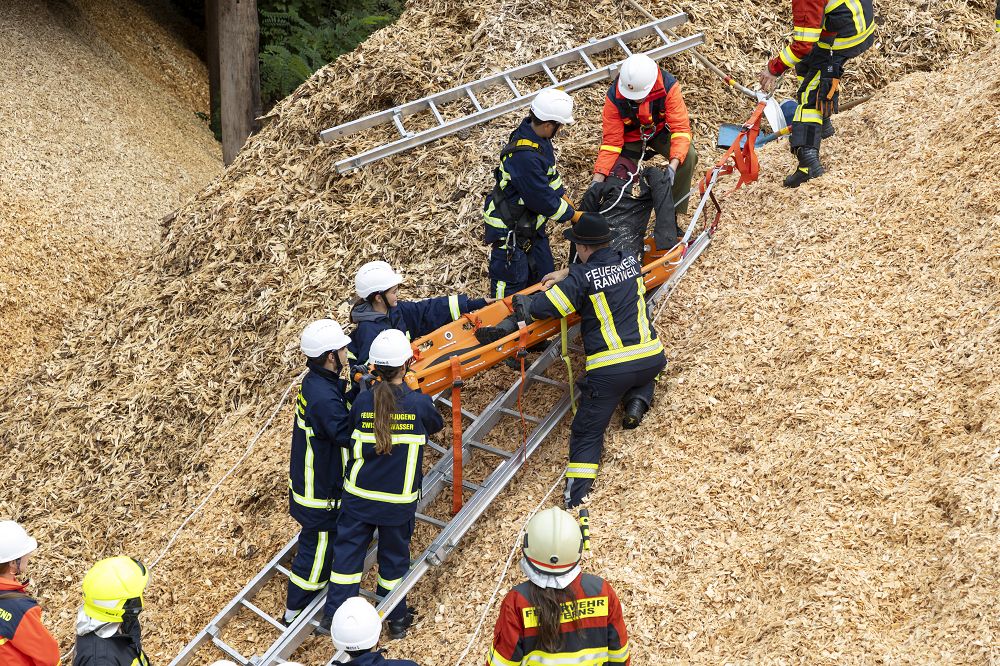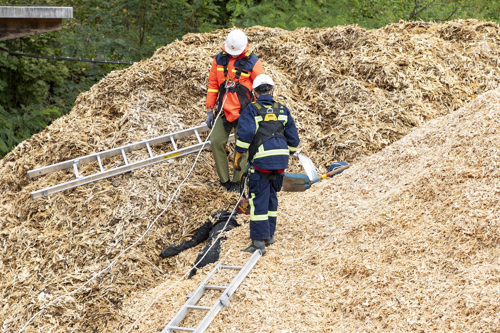 - – Zwei verschüttete Personen im Hackschnitzellager