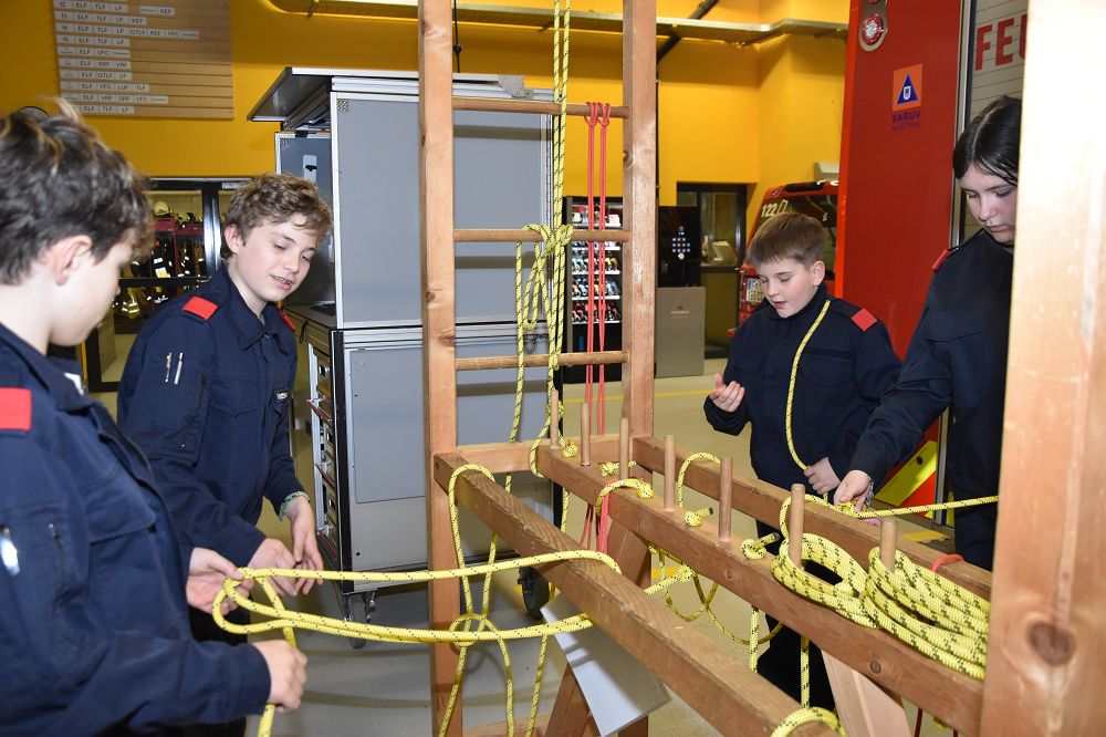 Nach den aktuellen Informationen durch Jugendleiter Daniel Lampert wurde die Mannschaft – wie bereits in der letzten Einheit – wieder in vier Gruppen eingeteilt. Drei Gruppen bereiteten sich weiterhin intensiv auf die Wissenstest-Stufen Bronze, Silber und Gold vor. Die vierte Gruppe arbeitete gemeinsam mit Jugendleiter Daniel Lampert an den nächsten Schritten Richtung Aktivstand.