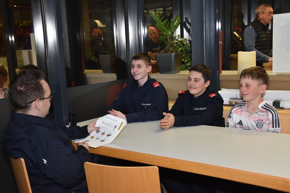 Parallel dazu wurde mit den Jugendlichen, die das goldene Wissenstest-Abzeichen bereits absolviert haben, das Thema Aktivstand weitergeführt. Aufbauend auf der letzten Gruppenstunde wurden zusätzliche Abläufe, Verantwortlichkeiten und organisatorische Themen besprochen, die mit dem Übertritt ab dem 16. Geburtstag einhergehen. Dabei ging es erneut um den Ablauf bei Einsätzen, interne Strukturen sowie um die wachsende Verantwortung als aktives Feuerwehrmitglied.