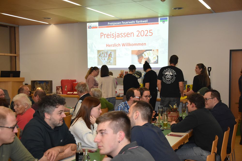 Das alljährliche Preisjassen der Feuerwehr Rankweil lockte auch in diesem Jahr rund 100 begeisterte Jasserinnen und Jasser in geselliger Runde zusammen. Der Abend begann mit einem gemeinsamen Abendessen, das nicht nur den Hunger stillte, sondern auch die ideale Grundlage für die kommenden Spielrunden schuf.