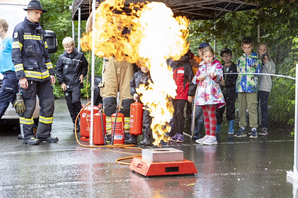 Am Samstag, dem 02. August 2025 konnten im Rahmen des Rankweiler Sommer Programmes bereits zum 14. Mal in Folge rund 60 Kinder im Alter von sechs bis 10 Jahren begrüßt werden. Wie bereits in den vergangenen Jahren wurde den Kids die Aufgaben sowie die Arbeit der Feuerwehr näher gebracht, wobei Spaß und Action natürlich nicht zu kurz kamen. Bei mehreren Stationen konnten sich die Kinder als angehende Florianis beweisen. Unter anderem konnte ein Brand mittels Feuerlöscher gelöscht, eine Fahrt mit der Drehleiter der Feuerwehr Feldkirch Stadt in luftige Höhen durchgeführt, mehrere Strahlrohre in Betrieb genommen sowie mit den Löschunterstützungsfahrzeugen ein Hindernisparcour bewältigt werden. Auch die Gemeindesicherheitswache und die Bundespolizei Rankweil waren mit einer Station vertreten. Bei dieser Station konnten die Kinder vieles über die spannende Arbeit der Polizei erfahren. Verschiedene Geschicklichkeitsspiele und ein gemeinsames Mittagessen rundeten den ereignisreichen Tag ab. Am Ende des Tages konnten die Teilnehmer*innen ein kleines Erinnerungspräsent von unserer Bürgermeisterin Katharina Wöß-Krall und den Verantwortlichen der Feuerwehr Rankweil entgegennehmen.