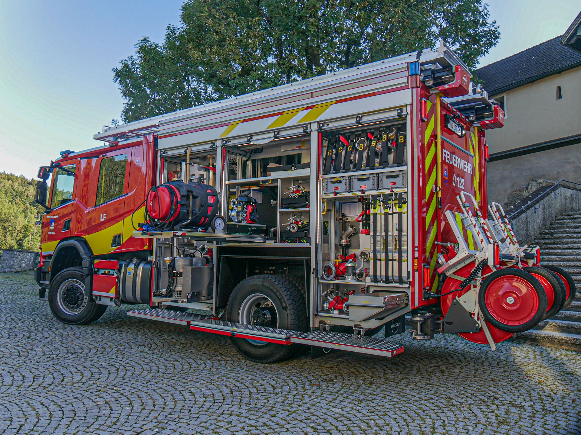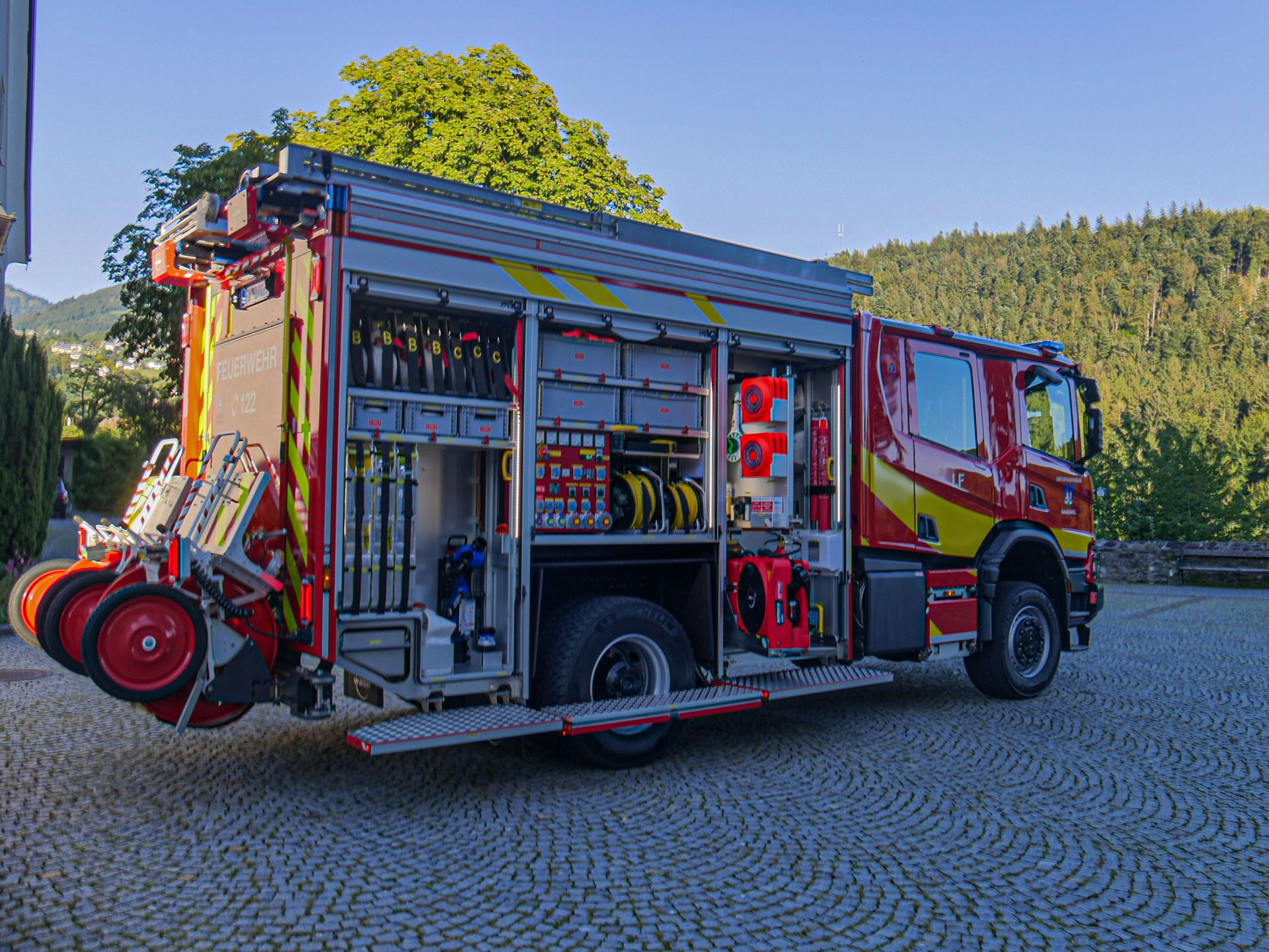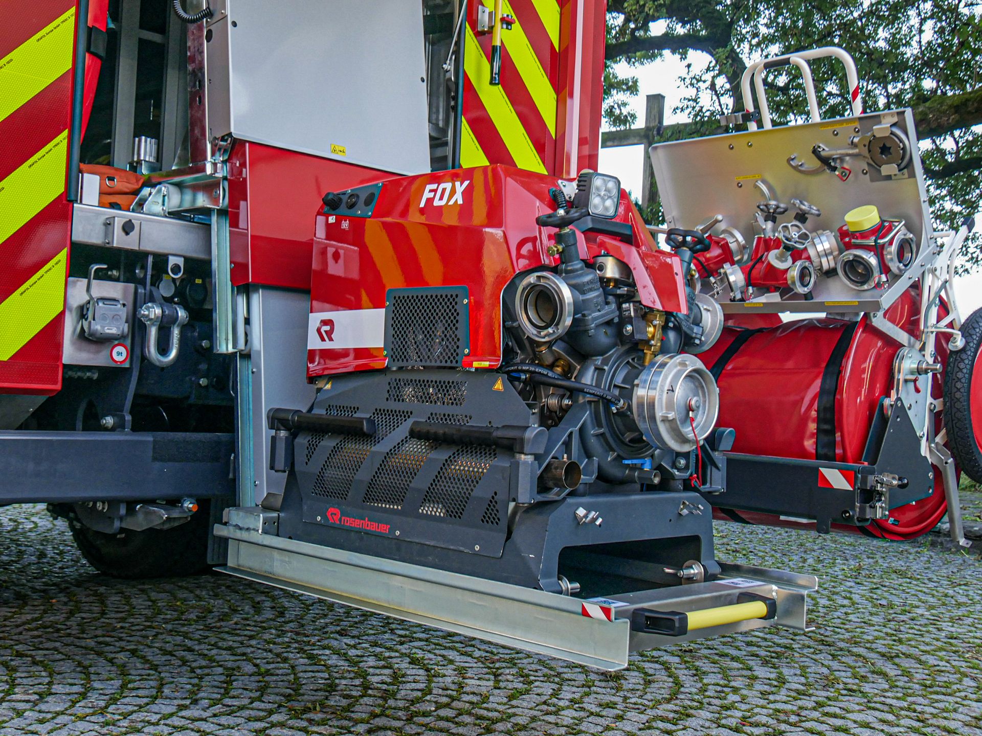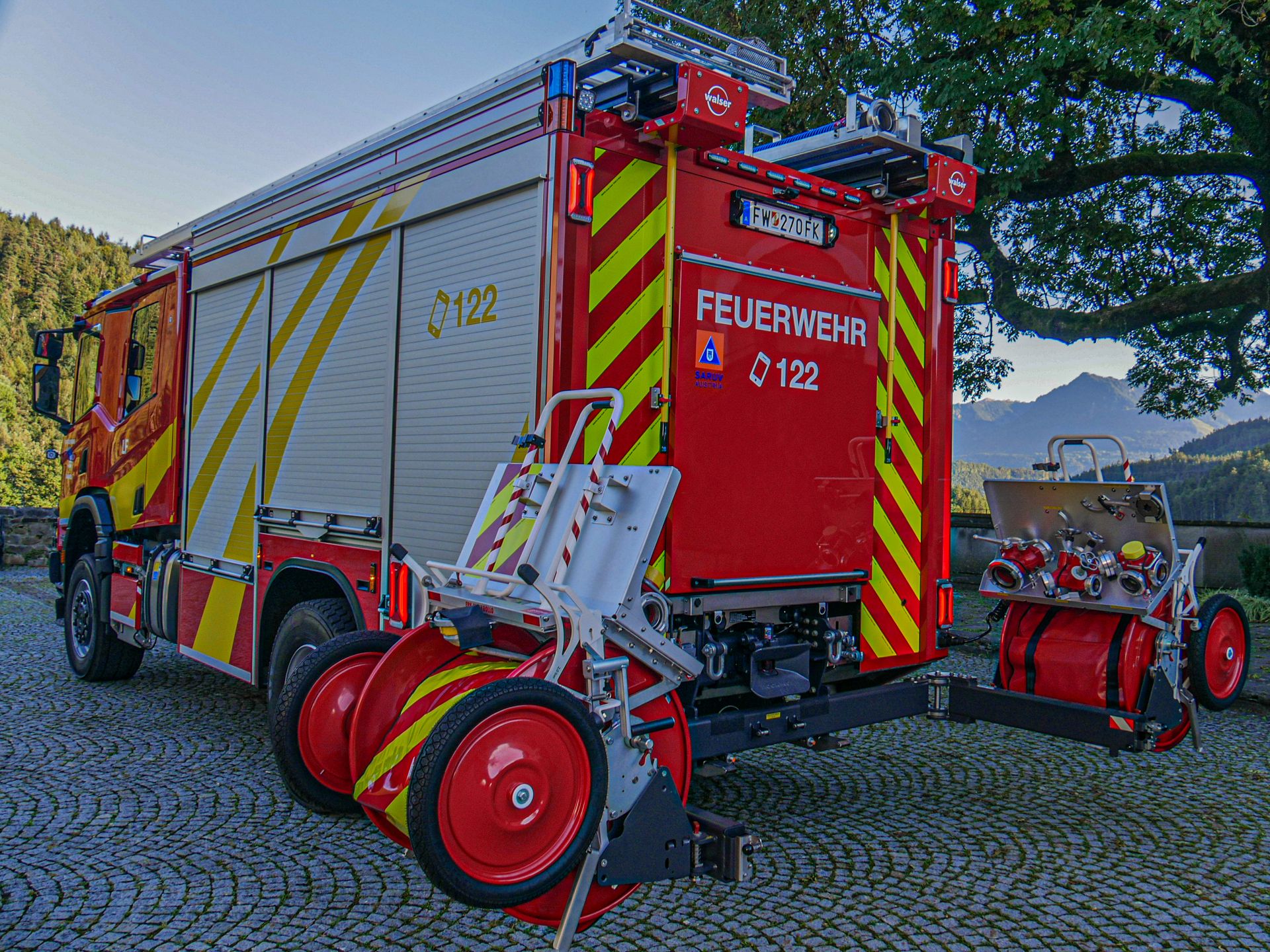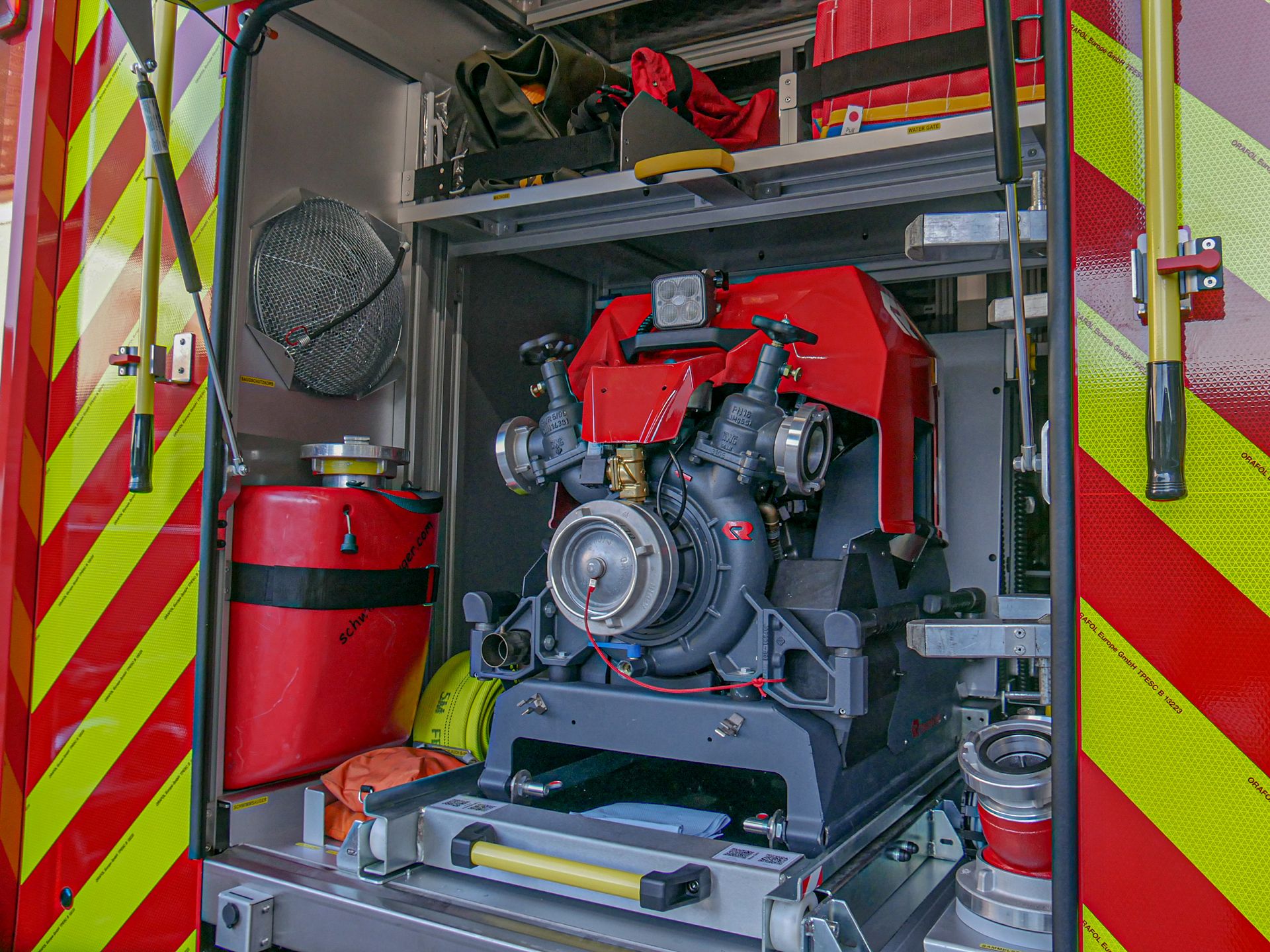 - 720 m B-Druckschläuche im hinteren Gerätefach in Buchten zum Auslegen während der Fahrt