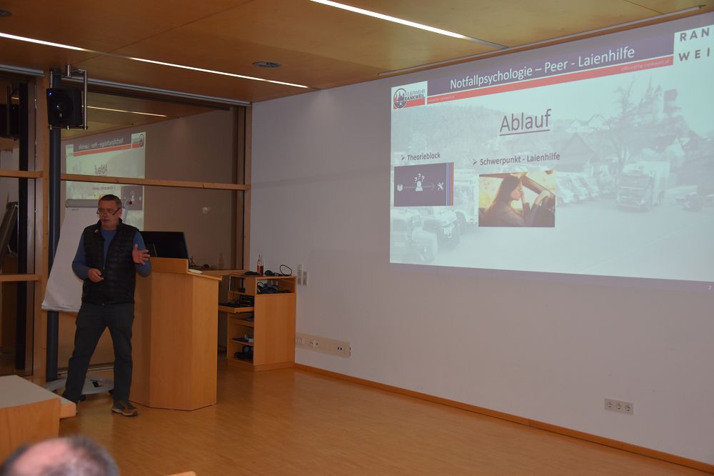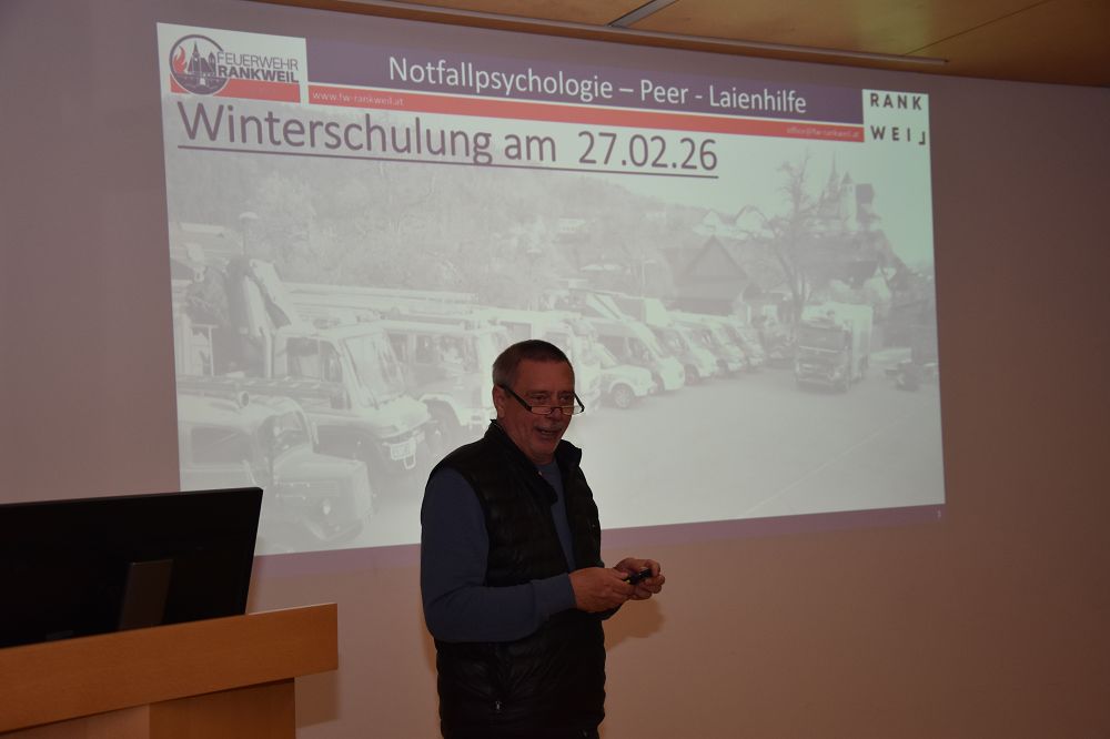 Im Rahmen der Vollprobe zur Winterschulung gab Dieter sein neu erworbenes Wissen an die interessierten Mitglieder weiter. In einem informativen und praxisnahen Schulungsabend behandelte er die Themen „Notfallpsychologie“, „Peer“ sowie „Laienhilfe“. Dabei wurde aufgezeigt, wie belastende Einsätze auf Einsatzkräfte wirken können, welche Unterstützungsangebote es innerhalb der Feuerwehr gibt und wie wichtig eine frühzeitige psychosoziale Betreuung ist.